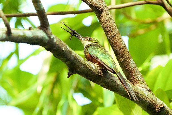 Aves emblemáticas: Corocoras rojas, Garzas, Trogones y Jacamares.
